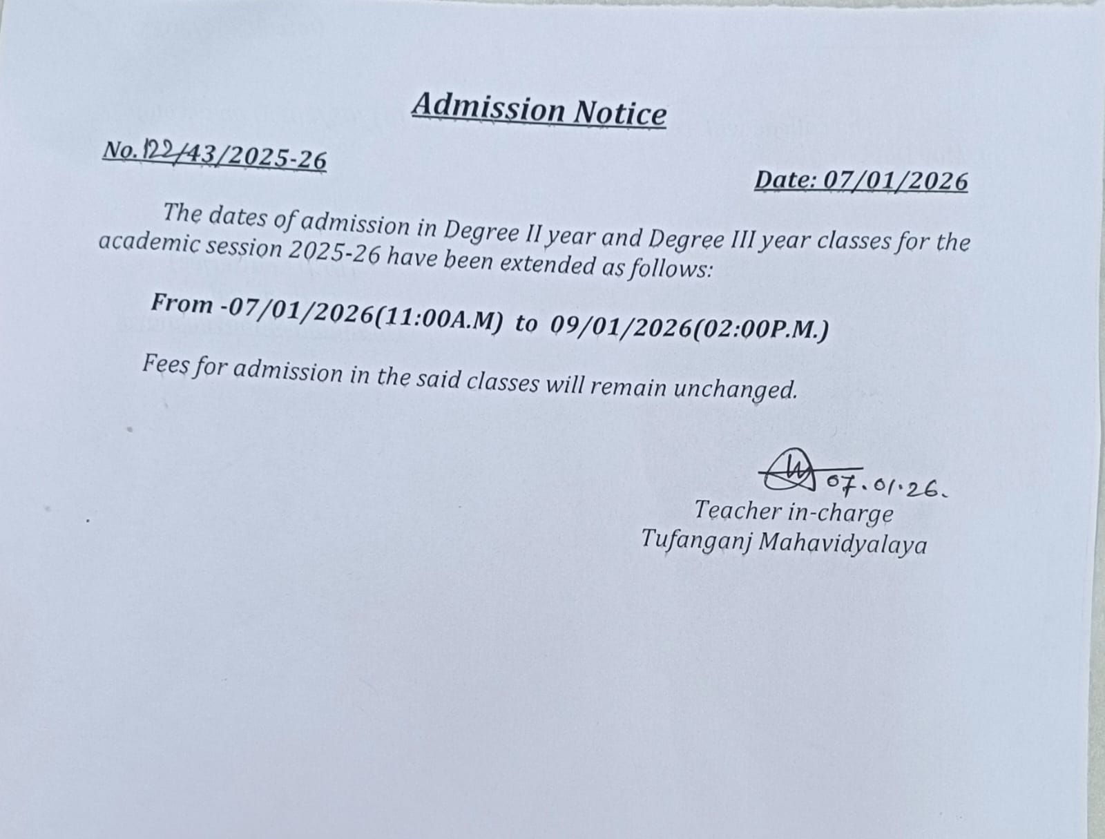 Admission Notice for Semester Payment Portal