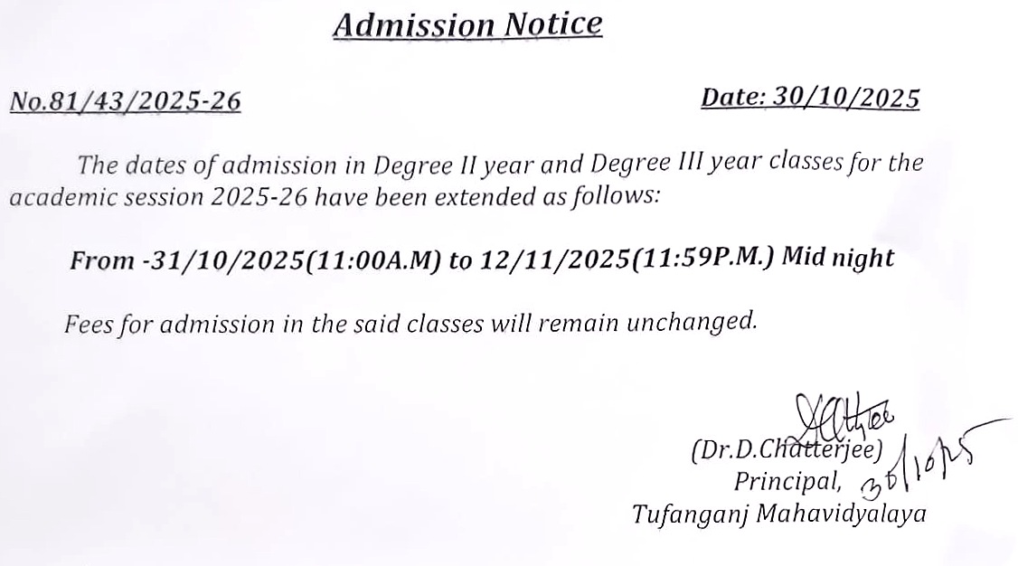 Date Extended for admission in Degree II year and Degree III year classes for the session 2025-26