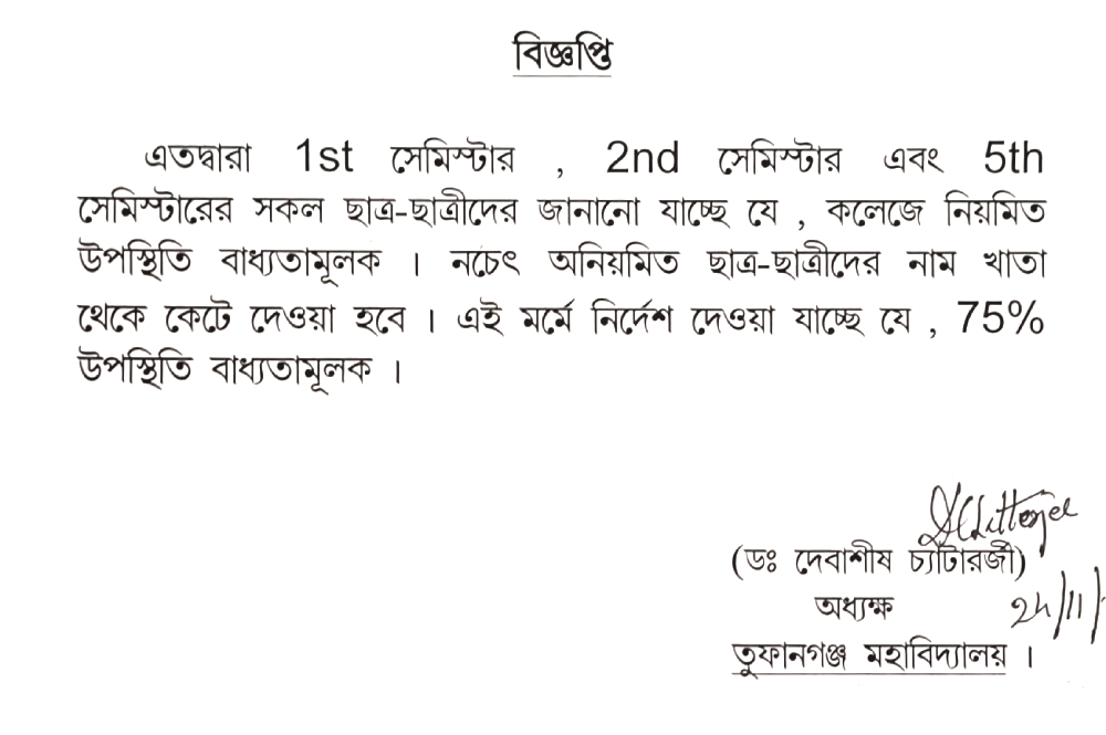 Important Notice for the 1st, 2nd & 5th Semester Students for the session 2025-26